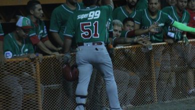 Prensa Fédebeis-15-3-2019. Isaías Velásquez fue remolcado desde la tercera base en la parte baja de la octava entrada, con un…