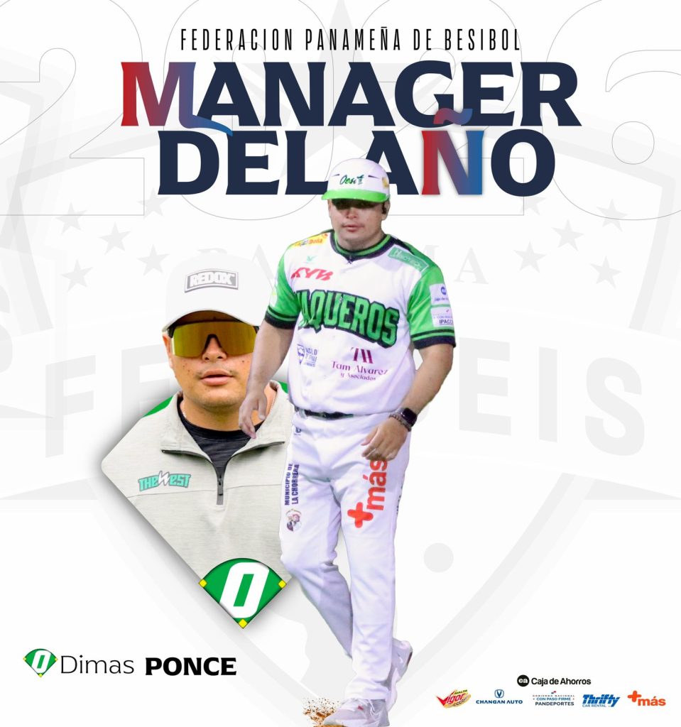 Prensa. Fedebeis. El estratega de los Vaqueros de Panamá Oeste, Dimas Ponce fue seleccionado este mediodía como el Manager del Año del 57 Campeonato Nacional de Béisbol Juvenil, Copa Caja de Ahorros en honor a las leyendas Darío Agrazal, David Rivas y Benjamín Salamín.