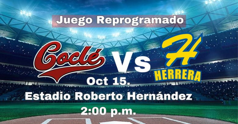 El partido número 13 en el calendario de juegos, entre Coclé y Herrera, programado para jugarse inicialmente el pasado 12 de octubre en el Remón Cantera, se jugará mañana jueves a las 2:00 p.m. y teniendo como sede el estadio Roberto Hernández de la ciudad de Las Tablas.