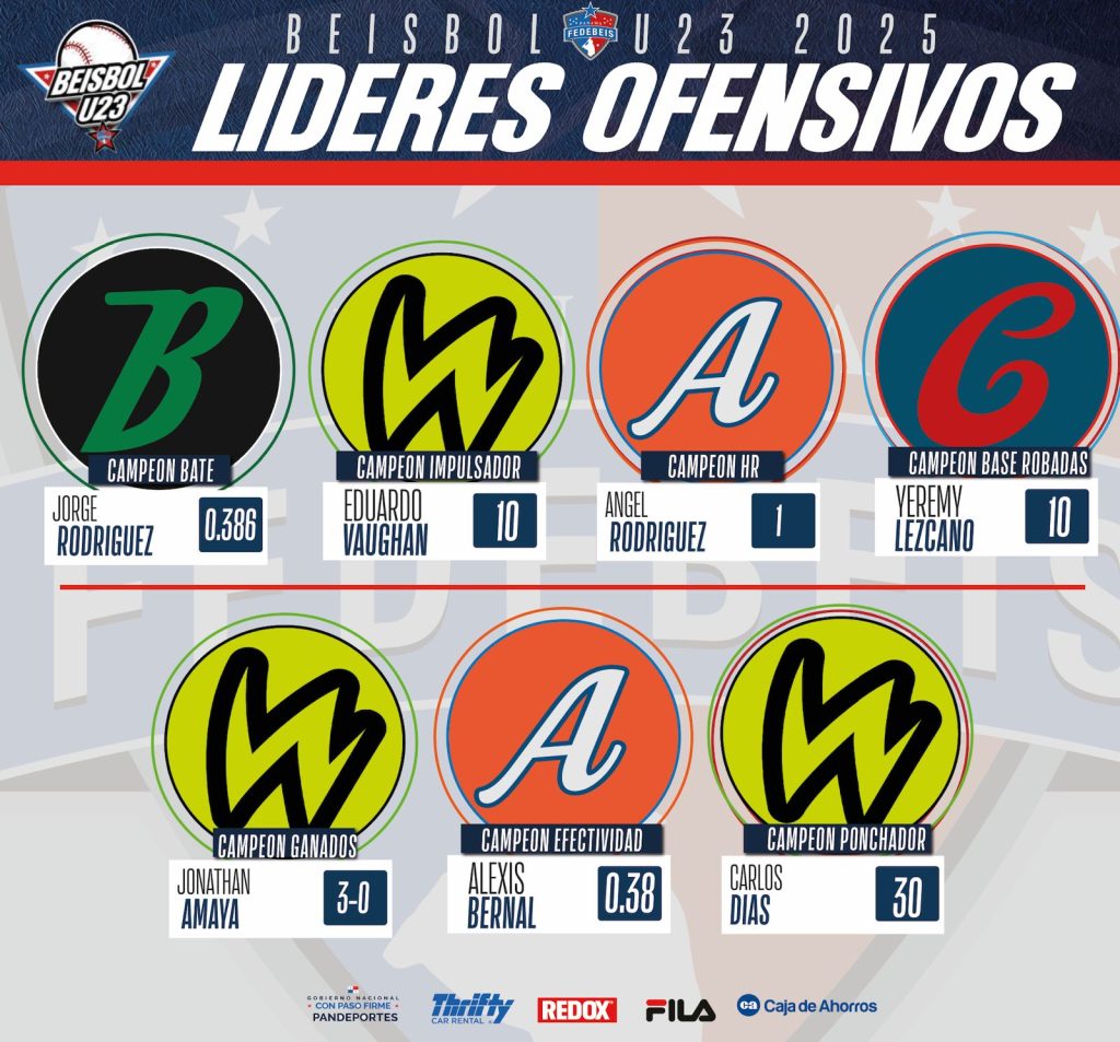 Prensa. Fedebeis. La Federación Panameña de Béisbol reveló esta mañana los líderes del 2do Campeonato Nacional de Béisbol U23, Copa PANDEPORTES – 2025.