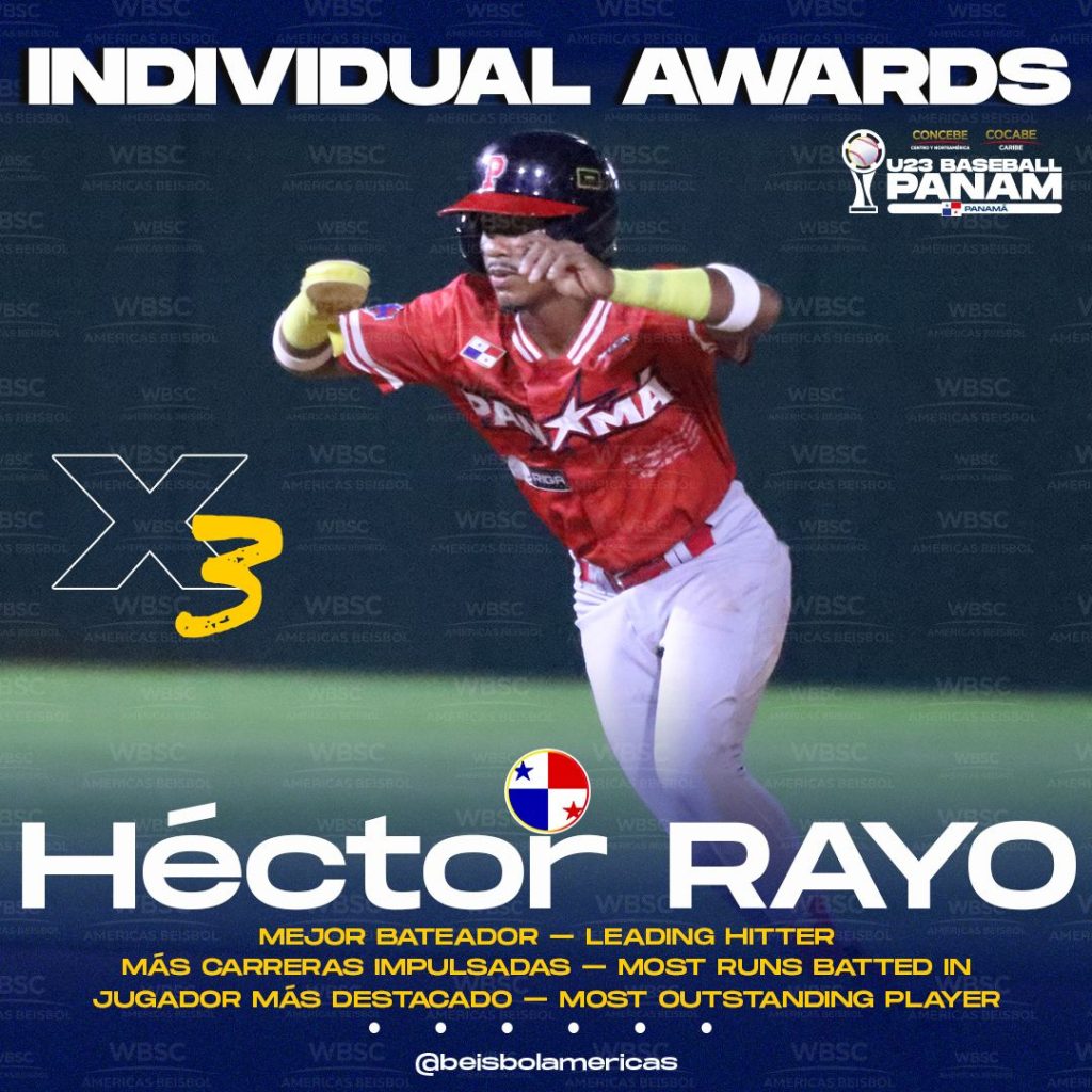 Prensa. Fedebeis. El jugador panameño Héctor Rayo terminó siendo el Jugador Más Destacado del Campeonato Premundial U23, el cual terminó con la coronación del equipo panameño, la noche de este sábado, cuando venció a Puerto Rico 4 carreras por 1.