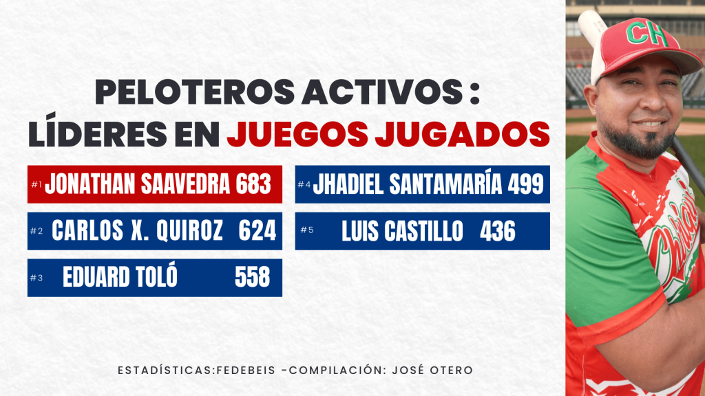 Inicio/Líderes Activos – Béisbol Mayor Líderes Activos – Béisbol Mayor Actualizado al 14 de abril 2026 – Estadísticas Oficiales Compartir Facebook X WhatsApp Compartir por correo electrónico Imprimir