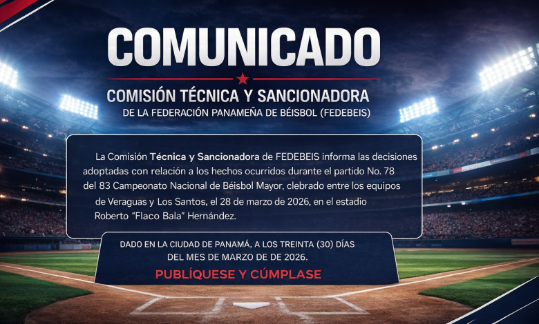 - Los hechos ocurridos el día 28 de marzo de 2026 en el Estadio Roberto “Flaco Bala” Hernández, durante el desarrollo del Campeonato Nacional de Béisbol, los cuales atentan contra el orden, la disciplina, el respeto y el espíritu deportivo que debe prevalecer en toda competencia oficial organizada bajo la jurisdicción de la Federación Panameña de Béisbol.